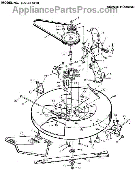 Parts for Craftsman 502257310: Mower Housing Parts