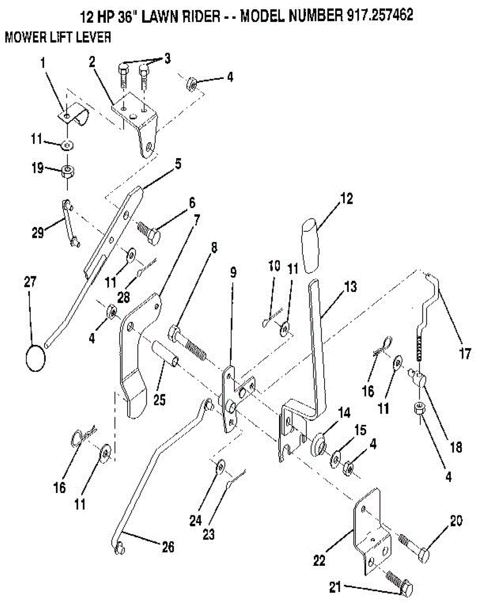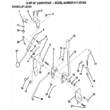Parts for Craftsman 917257462: Mower Lift Lever Parts