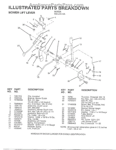 Parts for Weedeater WE12536A: Mower Lift Lever Parts