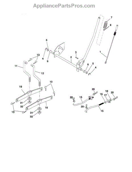 Parts for Poulan 96016001900: Mower Lift Parts