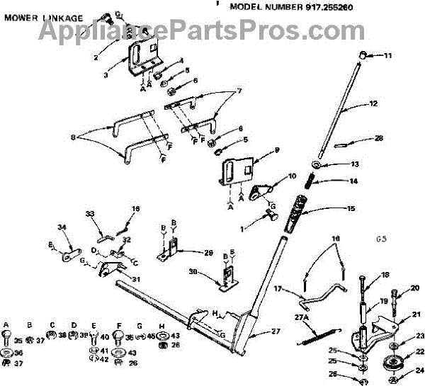 Parts for Craftsman 917255260: Mower Linkage Parts
