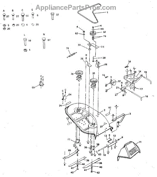 Parts for Craftsman 917254660: 38" Mower Parts