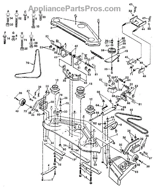Parts for Craftsman 917255950: 44" Mower Parts