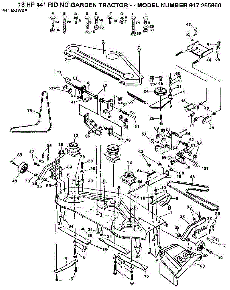 Parts for Craftsman 917255960: 44" Mower Parts