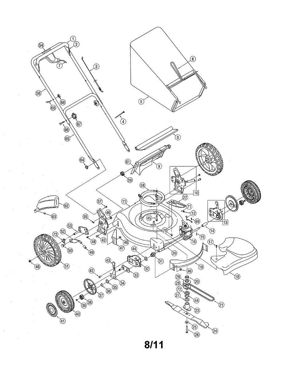 This is a complete wheel assembly for walk-behind and push lawnmowers. It is a single replacement wheel for the front wheels on a mower. Wheels may be damaged by impact with hard objects or from exposure to the elements over time. When the wheel is visibly damaged or otherwise does not roll as well as it should, it should be replaced.If the user is having difficulty pushing the walk-behind lawn mower, a visual inspection of the wheels will determine if a new part is required. Replacing a wheel on a lawn mower is simple. Tools including a socket set, pliers, and a screwdriver may be necessary to perform the repair.This wheel is a genuine OEM replacement part. It is compatible with MTD, Troy-Bilt, and Yard-Man machines. It is sold as an individual unit. The wheel is made of durable plastic.