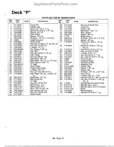 50" Mowing Deck "P" Page 2