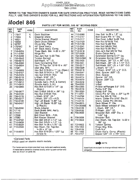 Parts for Mtd 190-846-000: 46" Mowing Deck Page 2 Parts