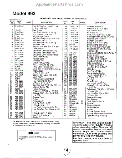 Parts for Mtd 190-993-000: Mowing Deck Page 2 Parts
