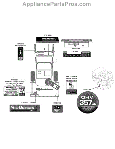 Mtd 777D13744 Label-Engine 357Cc OEM Part