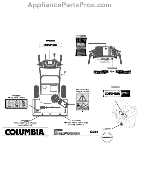 Mtd 777D20124 Label-Snow Auger H OEM Part