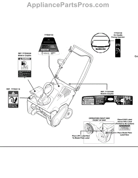 Mtd 777D20135 Label-Snow Auger H OEM Part