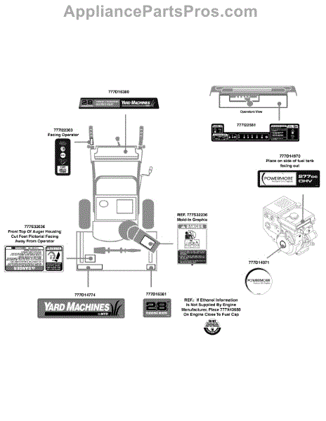 Mtd 777D16380 Label-Snow Handle OEM Part