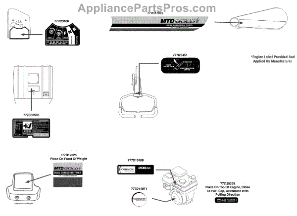Mtd 777D17026 Label-Tiller Front OEM Part