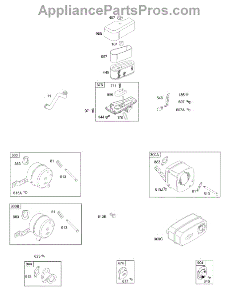 Parts for Briggs & Stratton 287707-0247-01: Muffler, Air Cleaner Parts
