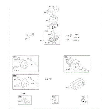 Parts for Briggs & Stratton 287707-1241-E1: Muffler, Air Cleaner Parts