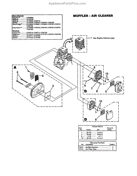 Parts for Homelite UT20693: Muffler And Air Cleaner Parts