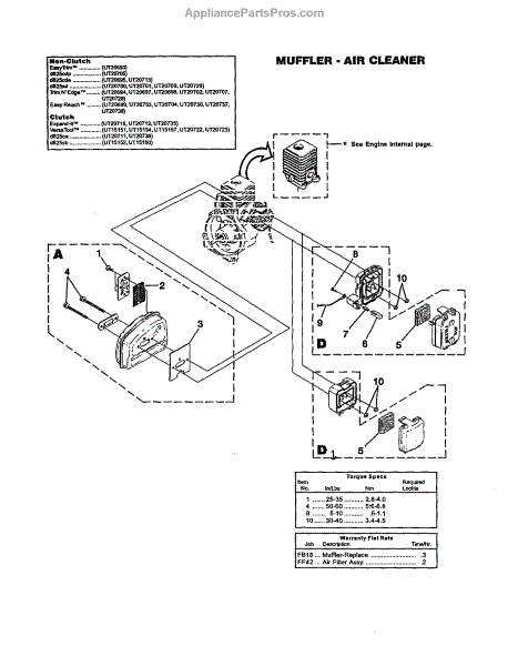 Parts for Homelite UT20729: Muffler And Air Cleaner Parts
