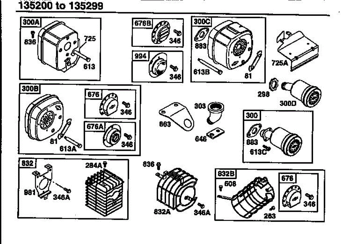 Replacement exhaust muffler for lawn mower engines. Reduces engine noise and absorbs vibrations. Replace if cracked, rusted, or excessively loud.