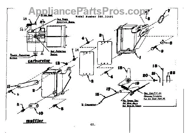 Parts for Craftsman 58031491: Muffler Assembly Parts
