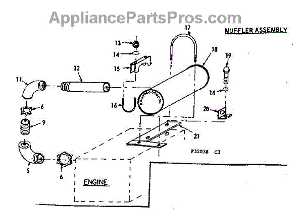 Parts for Craftsman 580320380: Muffler Assembly Parts