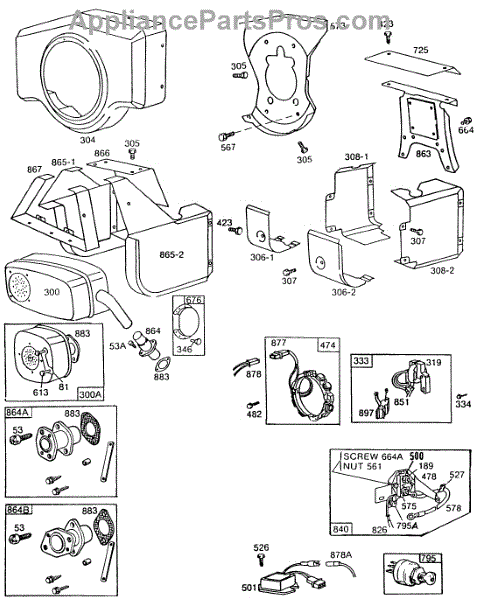 Parts for Briggs & Stratton 400437-0015-01: Muffler,Blower Hsg,Shielding Parts