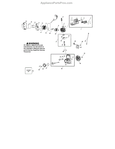 This genuine OEM replacement part is a rebuild kit of various gaskets used in a gas-powered leaf blower engine. This kit includes a crankshaft gasket, a carburetor gasket and carburetor adapter gasket, a cylinder base gasket, and a muffler shield. Gaskets act like a seal between different parts of an engine that keeps different liquids and gasses from passing into the wrong section of the engine. Gaskets can become worn out and crack or shrink over time through repeated use and exposure to exhaust and heat in the engine. A common sign of a fault gasket is if your engine is not running at full capacity or if it stalls out shortly after ignition. Changing out a gasket should not be a difficult job, but it will depend on which gasket you are replacing. Making this repair will require a screwdriver and set of pliers. This gasket rebuild kit is compatible with Poulan, Weed Eater, and Husqvarna gas powered leaf blowers. These gaskets are made of a mix of plastic and rubber. This kit ships individually and is sourced directly from its original manufacturer.