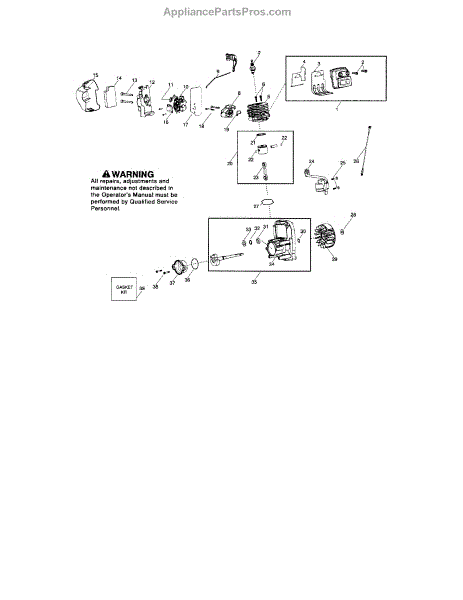 This genuine OEM replacement part is a rebuild kit of various gaskets used in a gas-powered leaf blower engine. This kit includes a crankshaft gasket, a carburetor gasket and carburetor adapter gasket, a cylinder base gasket, and a muffler shield. Gaskets act like a seal between different parts of an engine that keeps different liquids and gasses from passing into the wrong section of the engine. Gaskets can become worn out and crack or shrink over time through repeated use and exposure to exhaust and heat in the engine. A common sign of a fault gasket is if your engine is not running at full capacity or if it stalls out shortly after ignition. Changing out a gasket should not be a difficult job, but it will depend on which gasket you are replacing. Making this repair will require a screwdriver and set of pliers. This gasket rebuild kit is compatible with Poulan, Weed Eater, and Husqvarna gas powered leaf blowers. These gaskets are made of a mix of plastic and rubber. This kit ships individually and is sourced directly from its original manufacturer.