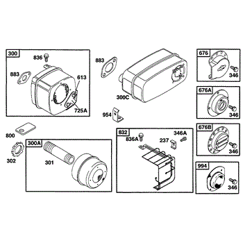 Parts for Briggs & Stratton 253707-0196-01: Muffler Group Parts