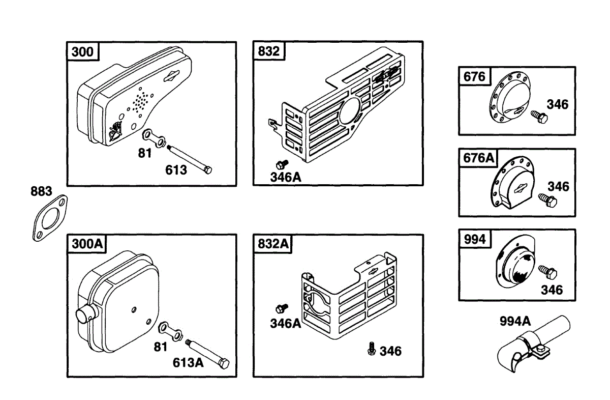 Parts for Briggs & Stratton 12E702-0631-01: Muffler Grp Parts