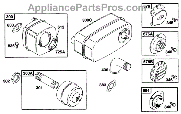 Parts for Briggs & Stratton 252707-0644-02: Muffler Grp Parts