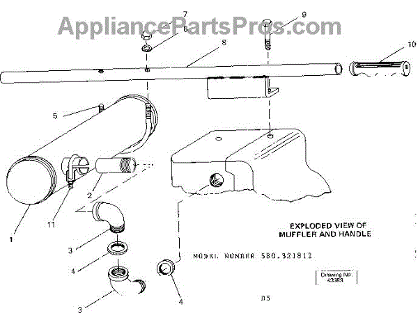 Parts for Craftsman 580321812: Muffler And Handle Parts