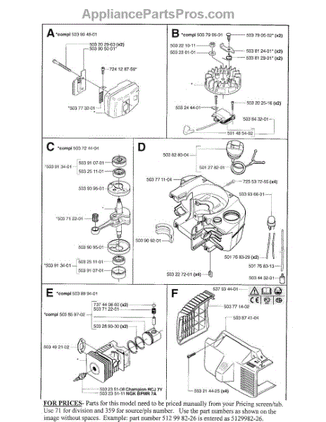 Parts for Husqvarna 225H75: Muffler,Ign,Crnkshft,Fuel,Cyl,Rear Housing Parts