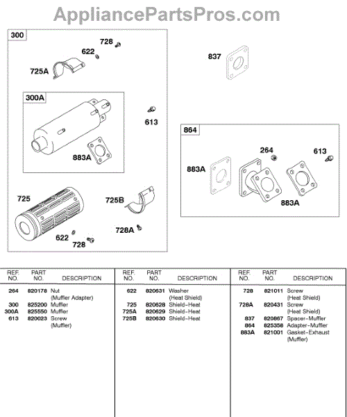 Parts for Briggs & Stratton 433447-0115-01: Muffler, Muffler Adapters Parts