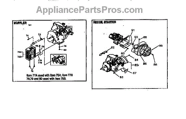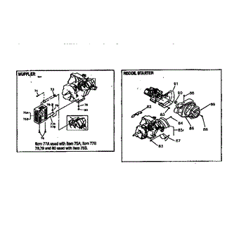 Parts for Generac GN190: Muffler And Recoil Starter Parts