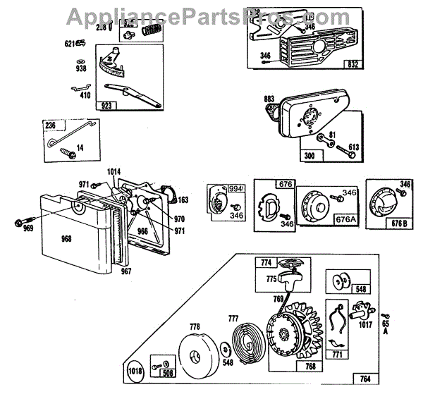 Parts for Briggs & Stratton 100708-0150-04: Mufflers, Air Cleaner,Rewind Parts
