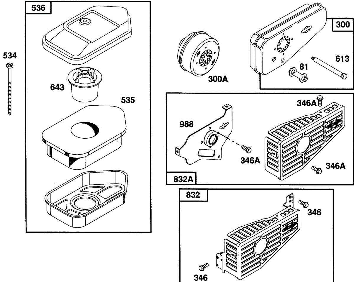 Parts for Briggs & Stratton 093902-3601-01: Mufflers And Air Cleaner Parts