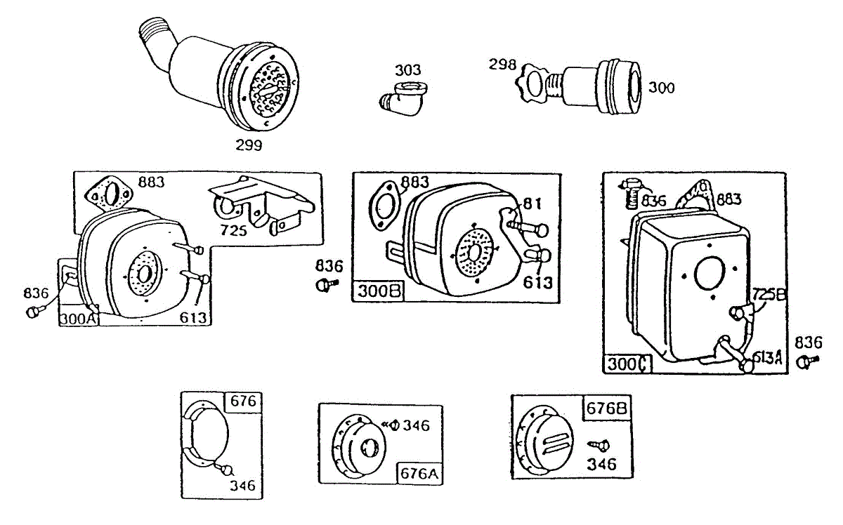 Parts for Briggs & Stratton 190702-2443-01: Mufflers And Deflectors Parts