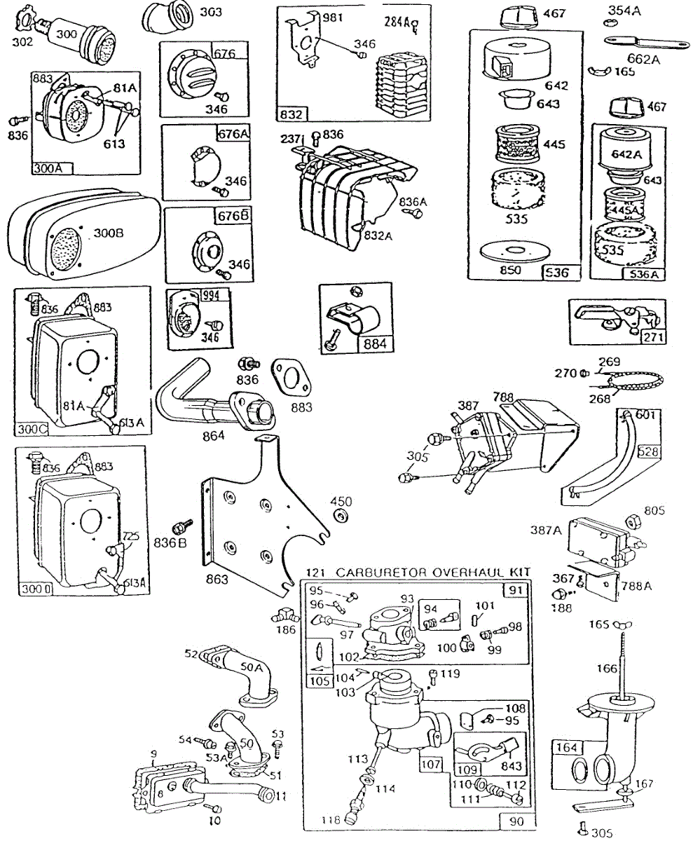 Parts for Briggs & Stratton 195452-0679-01: Mufflers, Carburetor, A / C Grps Parts