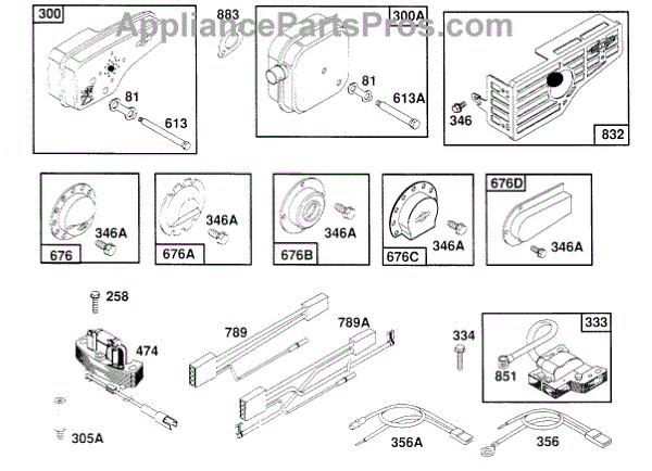 Parts for Briggs & Stratton 124802-0471-02: Mufflers,Deflectors,Elect. Parts