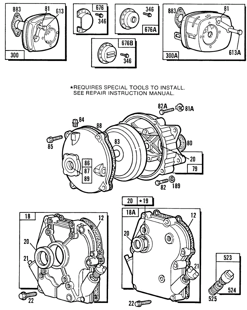 Parts for Briggs & Stratton 131232-0415-01: Mufflers,Gear Case,Crankcase Parts