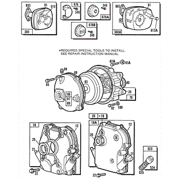 Parts for Briggs & Stratton 131232-0416-01: Mufflers,Gear Case,Crankcase Parts