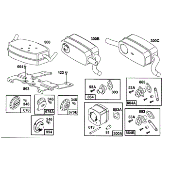 Parts for Briggs & Stratton 400707-1237-01: Mufflers Groups, Deflectors Parts