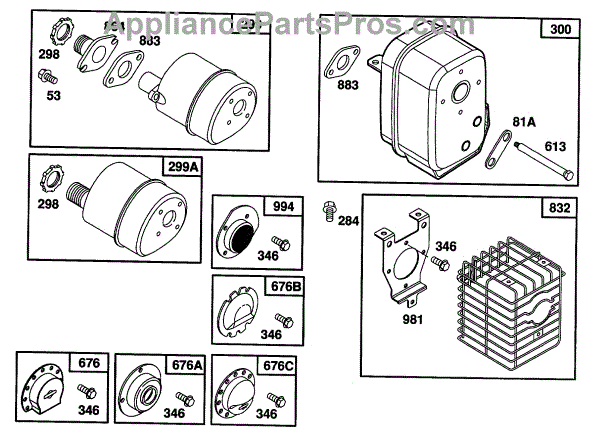 Parts for Briggs & Stratton 082232-2136-02: Mufflers, Muffler Deflectors Parts