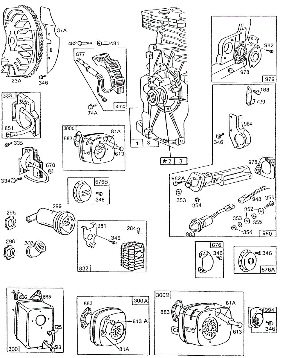 Parts for Briggs & Stratton 132232-0214-01: Mufflers,Primer,Electrical Parts