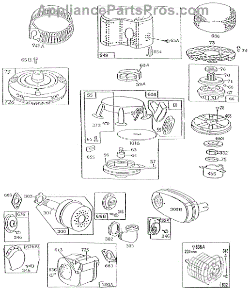 Parts for Briggs & Stratton 281707-4029-02: Mufflers,Rewind,Flywheels Parts