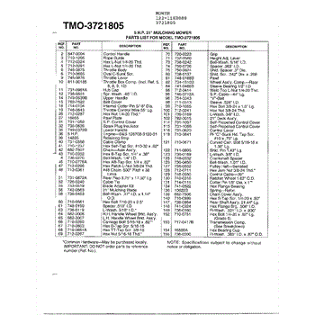 Parts for Mtd 122-118R088: 5Hp 21" Mulching Mower Page 2 Parts