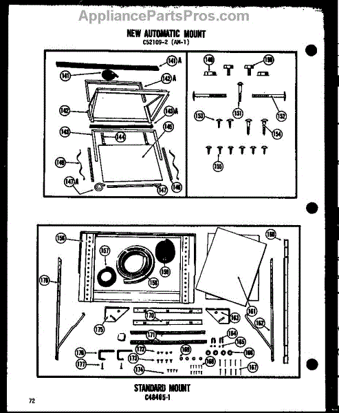 Parts for Amana 11-2JM/P54336-35R: New Automatic Mount (11-5G / P54390-70R) (11-5J / P54390-70R) (11-5Gh / P54390-72R) Parts