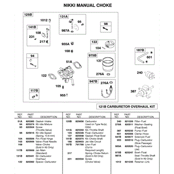 Parts for Briggs & Stratton 589447-0310-99: Nikki Manual Choke Carbuetor Parts