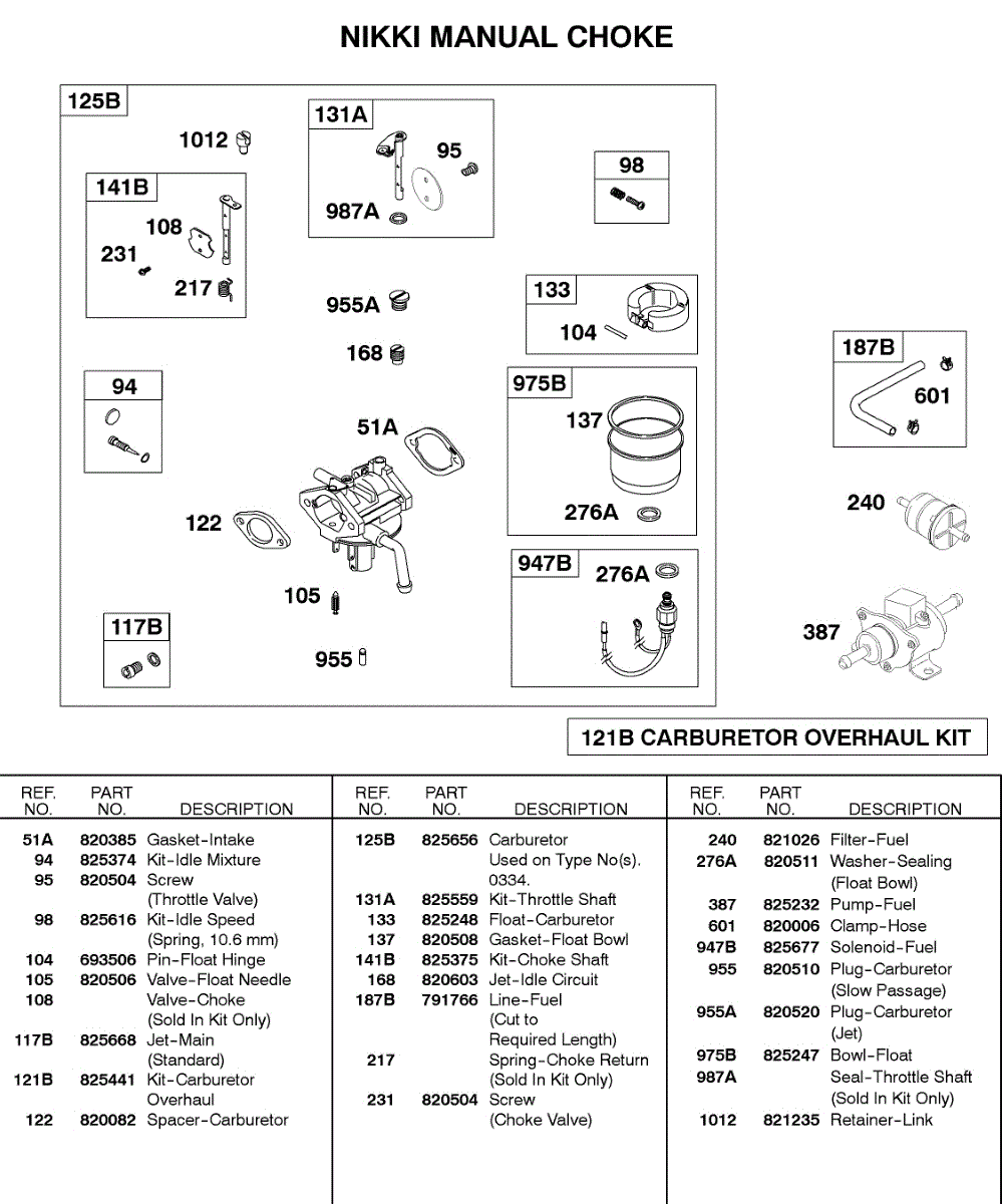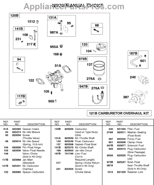 Parts for Briggs & Stratton 589447-0322-E2: Nikki Manual Choke Carbuetor Parts
