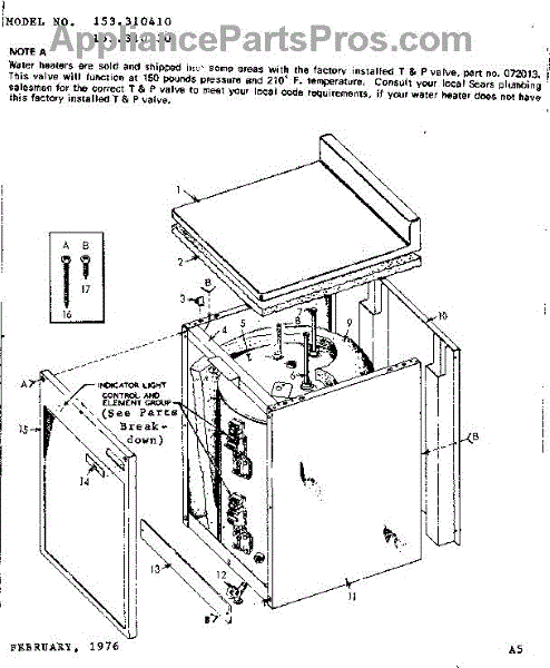 Parts for Kenmore 153.310410 (153310410, 153 310410): Non-Functional Replacement Parts